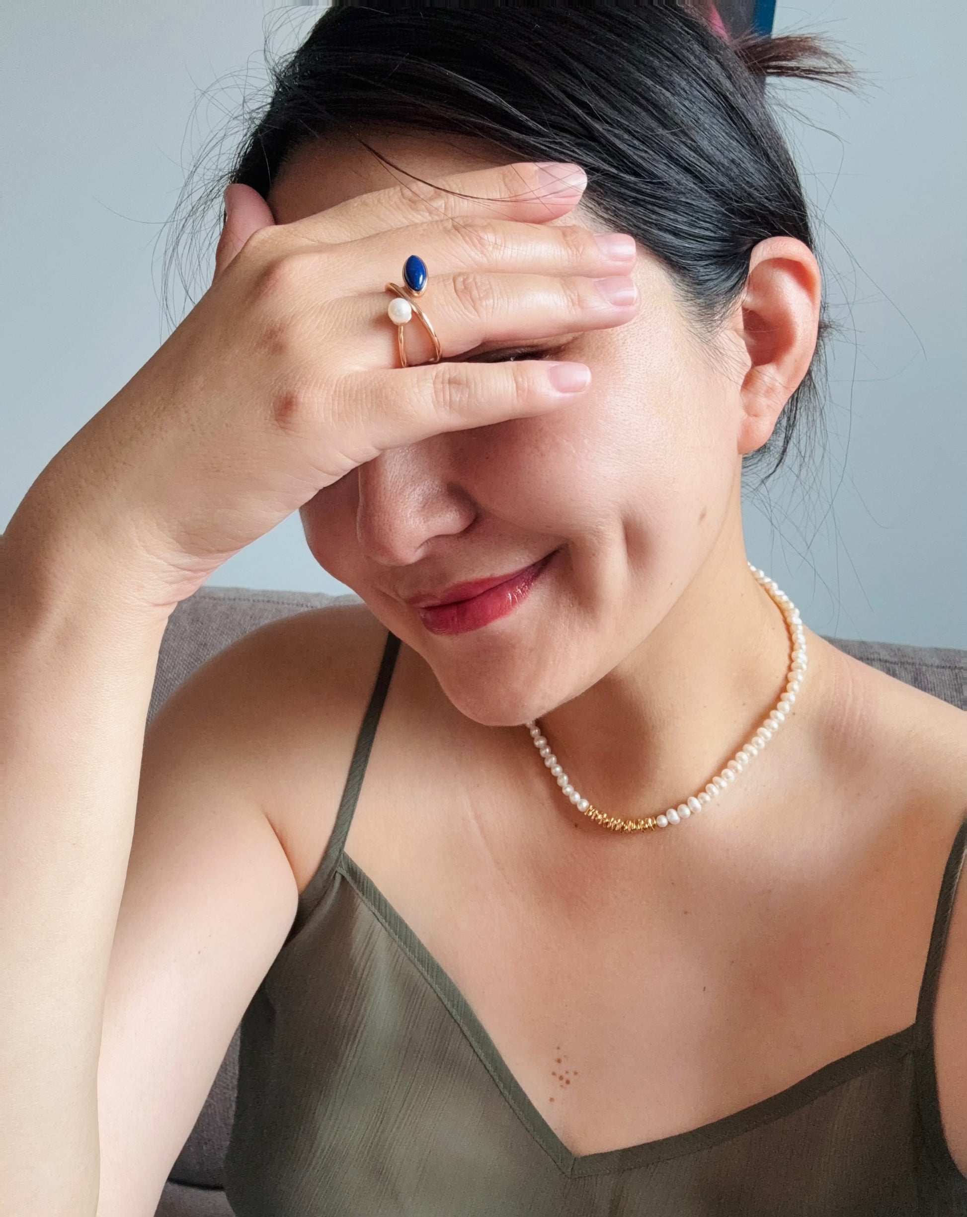 Material: 925 silver/natural pearl/lapis lazuli Color: Vintage gold Size: Opening size 14-15 Pearl size 6mm