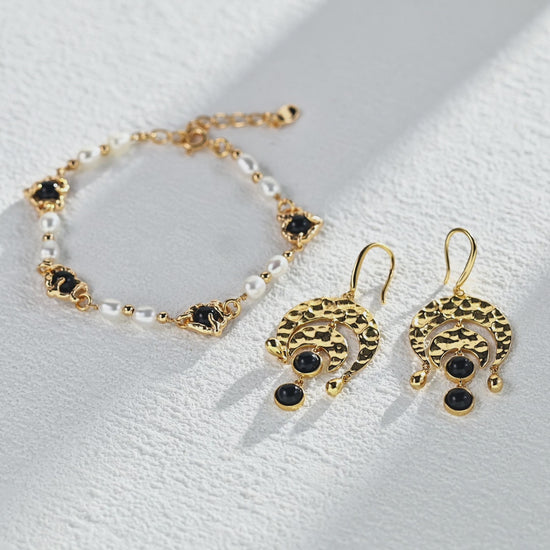 S925 silver vintage natural pearl black agate bracelet, elegant Tudor era style