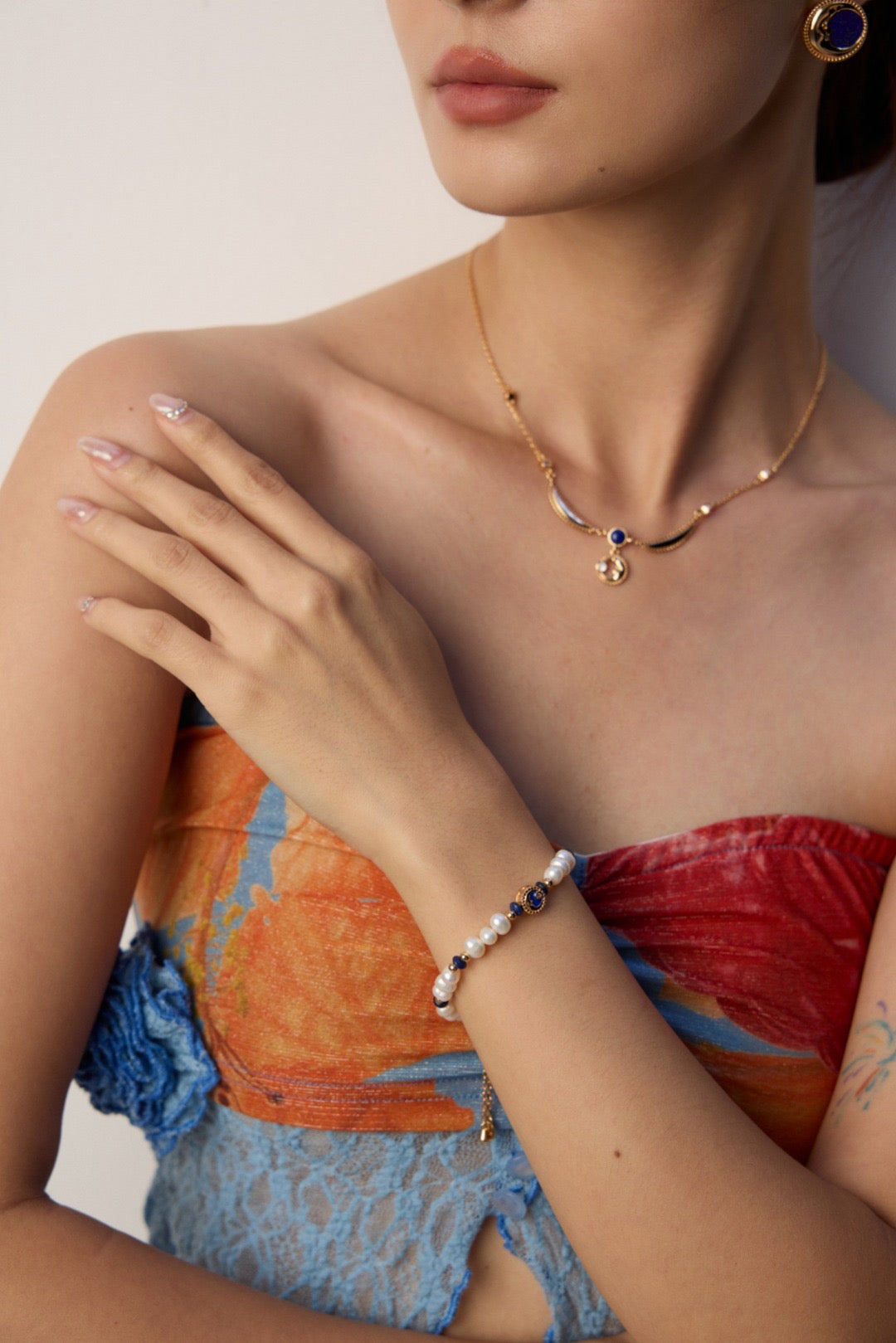 Material: 925 silver / lapis lazuli / zircon Color: Retro gold Size: Chain length about 40cm + 6cm extension chain Lapis lazuli about 4mm