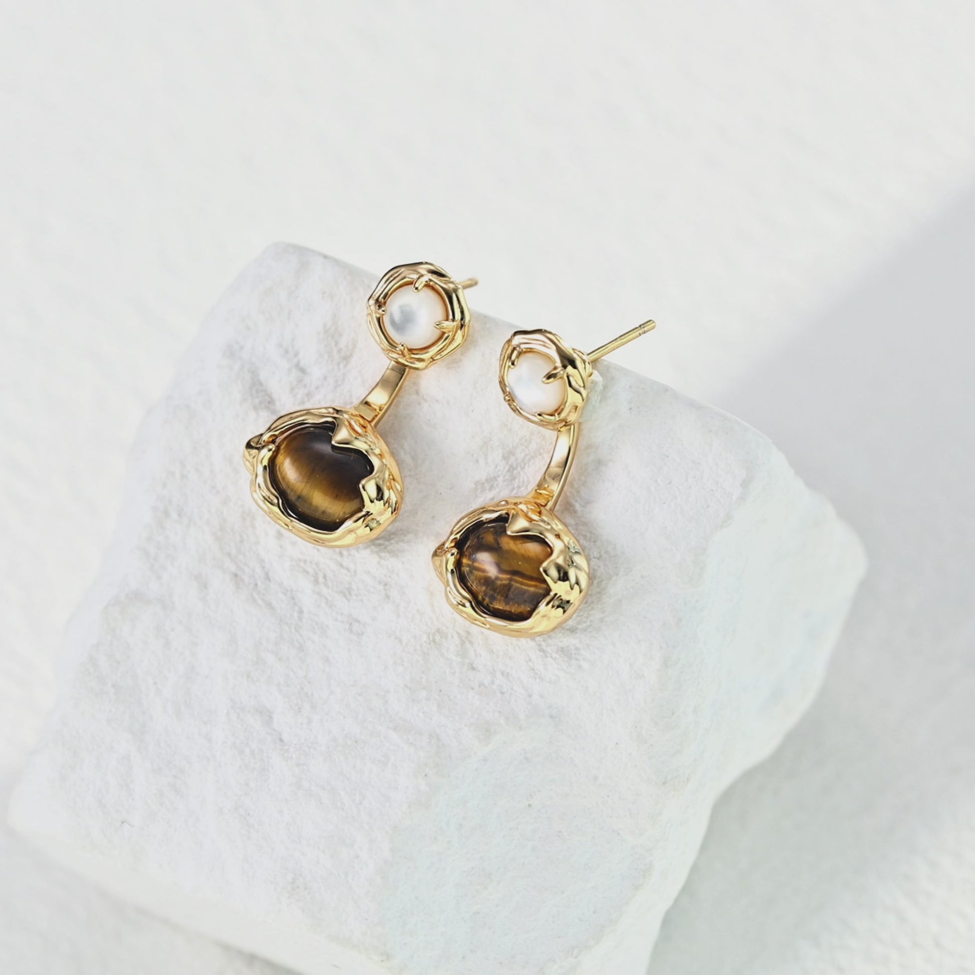 When the pure white clam meets the profound tiger's eye, gently encased in sterling silver, a dialogue of elegance and mystery quietly unfolds. Wear these earrings and let every breeze become the star of your charm.