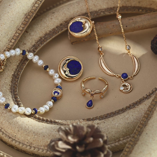 S925 Silver Vintage Natural Pearl Lapis Lazuli Bracelet