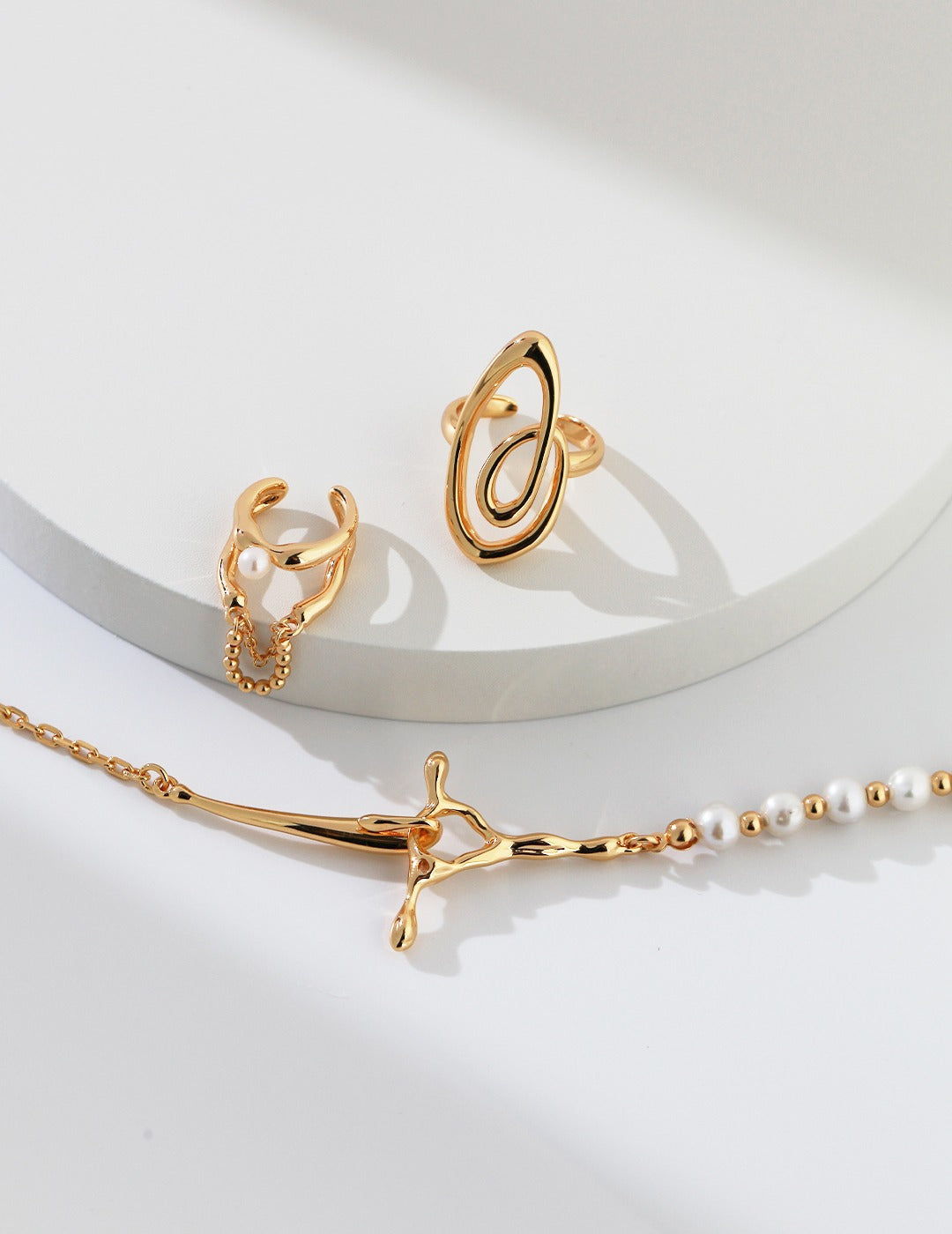 The design based on natural elements, with fluid as the core like the sea spine, and the regular Characteristics of fluid are simply extracted, reintegrated and beautified and matched with natural pearls to design a fashionable and atmospheric necklace style.