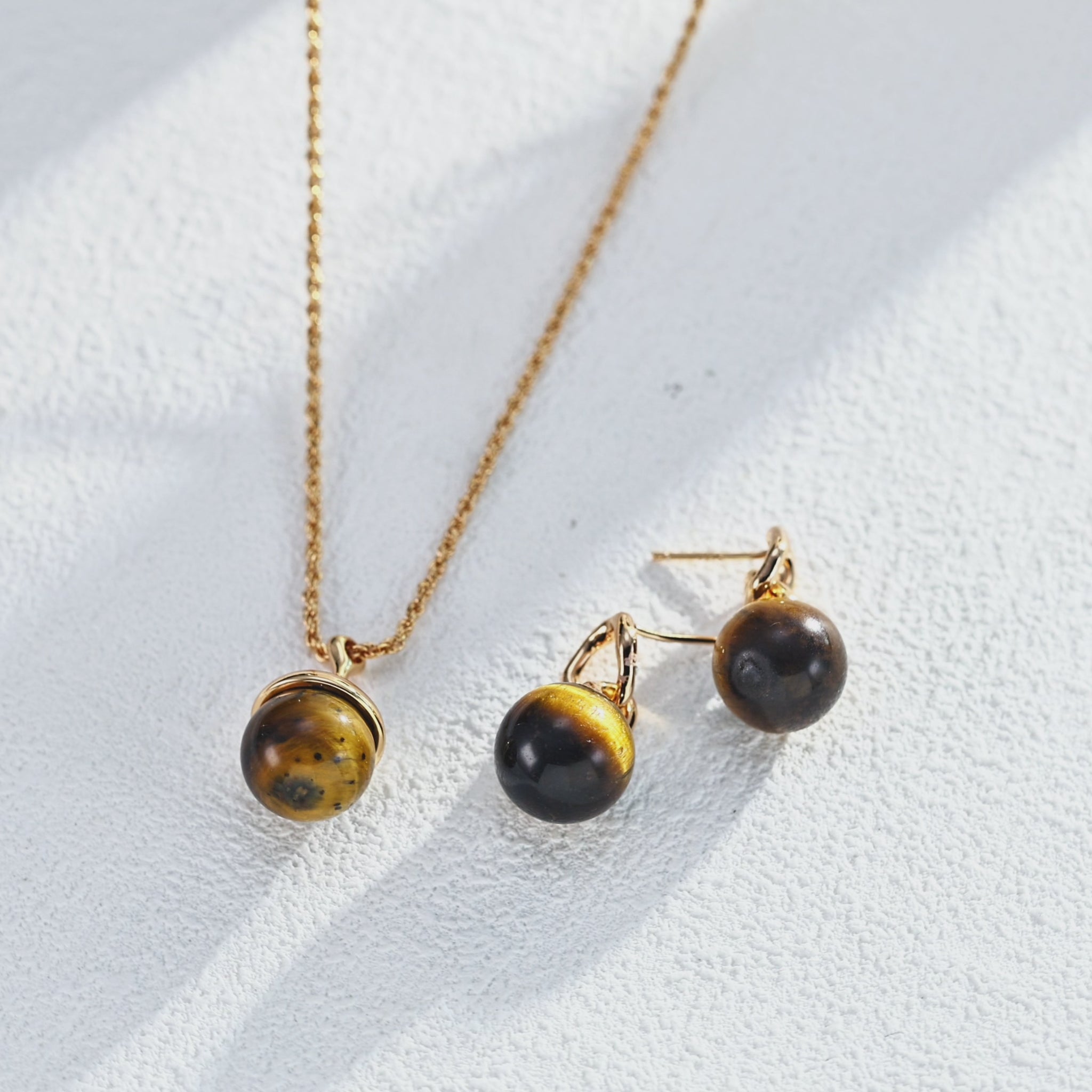 Sterling silver tiger's eye shell bead necklace, pinecone-shaped, simple yet sophisticated. The unique pinecone shape design, like a masterpiece of nature, showcases a natural and refreshing beauty. The gold chain encircles the neck like an elegant river, gently telling a story of the fusion of fashion and classic style.